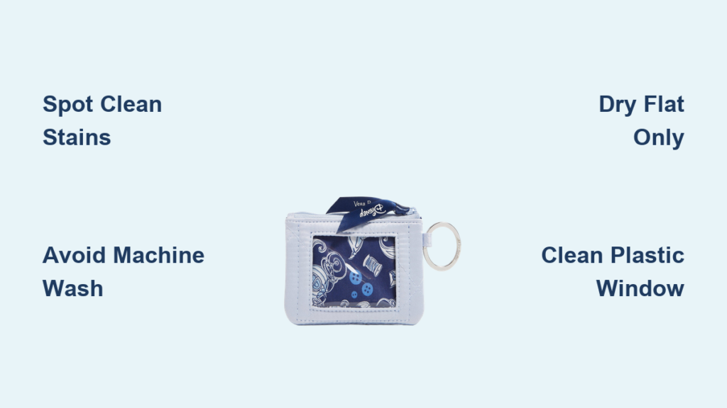 Flip your ID holder inside out and run your fingers along interior seams. Vera Bradley’s care labels are often sewn into side hems or tucked behind zipper tabs—not printed on the exterior. If you spot “Hand Wash Only” or “Do Not Bleach,” machine washing is off-limits. No label? Proceed with extreme caution using spot cleaning only, as modern pieces contain mixed materials that react poorly to water submersion.