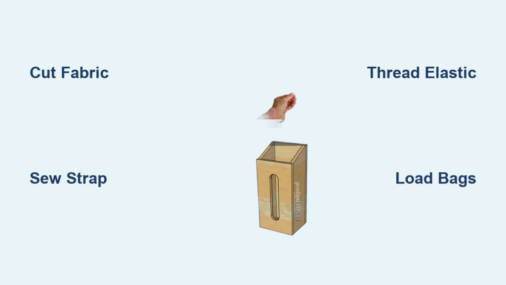 Your new plastic bag holder transforms cluttered storage into organized efficiency. This 30-minute project pays dividends every day as you grab bags for pet waste, car trash, or bathroom liners without hunting through messy drawers. Make several in coordinating fabrics for different areas—one in the laundry room for dryer lint, another in the garage for quick clean-ups, and a third in the pantry for everyday use.