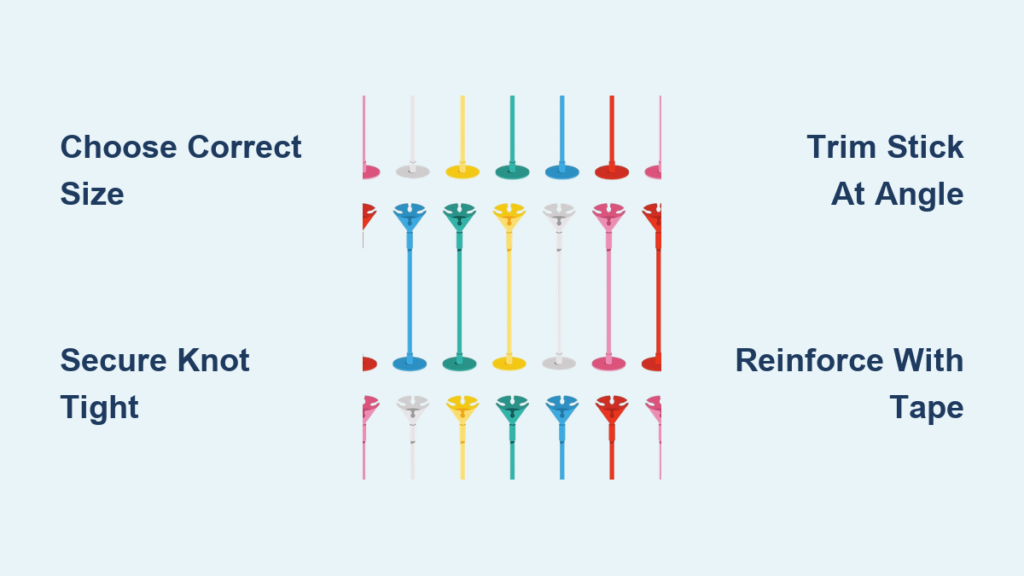 Immediate solution: Remove the balloon, retie the knot twice as tight around the stick, then apply a rubber band 1cm above the knot. For recurring issues, switch to clip-style holders—our resource guide shows they outperform cups for latex balloons. Prevention: Always inflate to 85% capacity; underinflated balloons lack neck tension for secure grip.