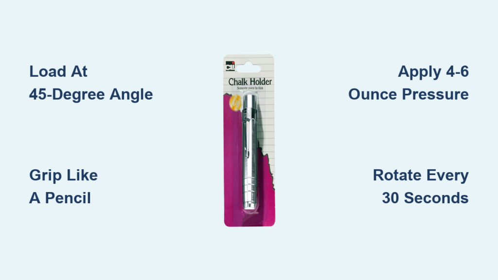 Hold the empty holder tilted at 45 degrees and slide chalk tip-first into the mechanism. For clamp-style holders, apply light barrel pressure while inserting to open the jaws slightly. Twist-style holders require clockwise rotation during insertion to engage the threading. Stop immediately when you feel firm resistance—forcing it further cracks the chalk at the stress point. Test seating by gently twisting the chalk; it should rotate smoothly without slipping.